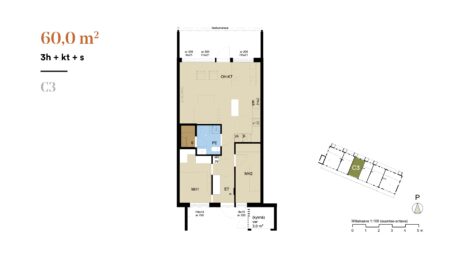 3 huonetta,