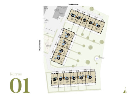 Tervetuloa keskustelemaan työmaakonttiin Muuramen Koivikon rakenteilla olevista rivitalokodeista.