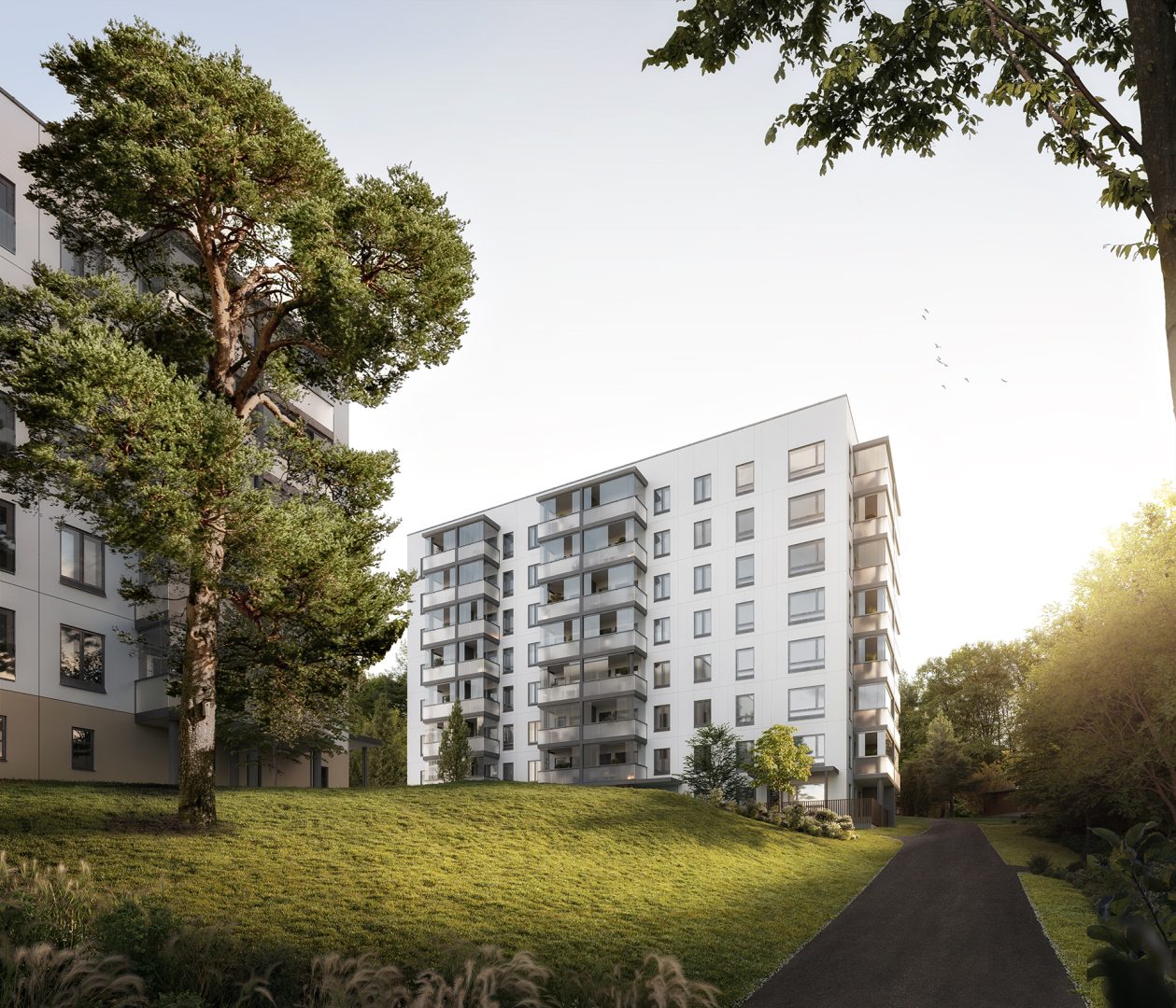 Tampereen Kaukajärvi on saanut nimensä reilun kolmen kilometrin mittaiselta järveltä. Alueella on ollut asutusta jo keskiajalla, eikä ihme – vehreä ja idyllinen ympäristö on rauhallinen kotipesä. Entisen seurakuntatalon paikalle valmistuneen Asunto Oy Tampereen Hymnin nimi on kunnianosoitus paikan historialle, josta muistuttaa myös tontin kulmassa kasvava Jumalan mänty. Suojeltu puu on toiminut entisaikaan harjulla kulkeneiden maamerkkinä.