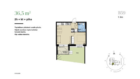 Arvioitu rahoitusvastike vuoden ajan 247,28 EUR/kk sisältää lainan korot (ei lainan lyhennystä). Arvioitu rahoitusvastike tulee olemaan vuoden jälkeen valmistumisesta 562,00 EUR/kk sisältää lainan koron ja lainan lyhennykset. Yhtiö tulee keräämään lyhennyksen osuutta pääomavastikkeessa (koron lisäksi) viimeistään puoli vuotta ennen ensimmäisen lyhennyksen määräpäivää, jotta lyhennyksen osuus on yhtiön käytettävissä lyhennyksen eräpäivänä. Vesimaksu 23,50 EUR / kk / hlö on ennakkomaksua, joka tasataan omaa kulutusta vastaavaksi asunnon mittarilukemaan perustuen. €