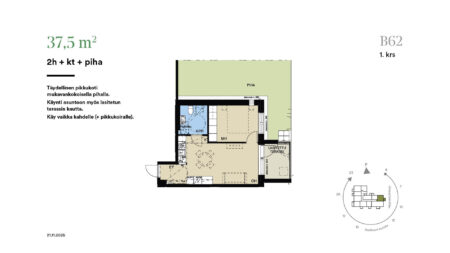Arvioitu rahoitusvastike vuoden ajan 253,88 EUR/kk sisältää lainan korot (ei lainan lyhennystä). Arvioitu rahoitusvastike tulee olemaan vuoden jälkeen valmistumisesta 577,00 EUR/kk sisältää lainan koron ja lainan lyhennykset.
