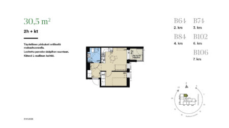 Arvioitu rahoitusvastike vuoden ajan 237,16 EUR/kk sisältää lainan korot (ei lainan lyhennystä). Arvioitu rahoitusvastike tulee olemaan vuoden jälkeen valmistumisesta 539,00 EUR/kk sisältää lainan koron ja lainan lyhennykset. Yhtiö tulee keräämään lyhennyksen osuutta pääomavastikkeessa (koron lisäksi) viimeistään puoli vuotta ennen ensimmäisen lyhennyksen määräpäivää, jotta lyhennyksen osuus on yhtiön käytettävissä lyhennyksen eräpäivänä. Vesimaksu 23,50 EUR / kk / hlö on ennakkomaksua, joka tasataan omaa kulutusta vastaavaksi asunnon mittarilukemaan perustuen. €