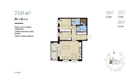 3 huonetta,