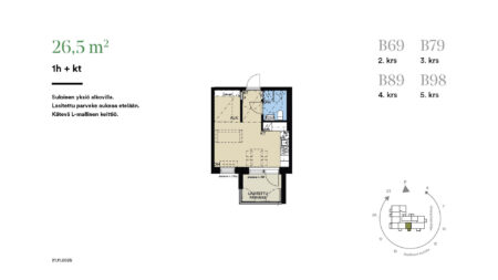 Arvioitu rahoitusvastike vuoden ajan 238,92 EUR/kk sisältää lainan korot (ei lainan lyhennystä). Arvioitu rahoitusvastike tulee olemaan vuoden jälkeen valmistumisesta 543,00 EUR/kk sisältää lainan koron ja lainan lyhennykset.