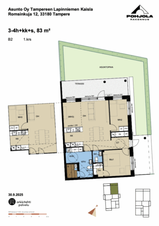 Arvioitu rahoitusvastike vuoden ajan 731,49 EUR/kk sisältää lainan korot (ei lainan lyhennystä). Arvioitu rahoitusvastike tulee olemaan vuoden jälkeen valmistumisesta 1.640,91 EUR/kk sisältää lainan koron ja lainan lyhennykset. Arvioitu tontinlunastushinta on tämän asunnon osalta 70.465,00 EUR (lunastuksen jälkeen ei peritä tontinvuokravastiketta, joka tämän asunnon osalta on 297,14 EUR/kk).
