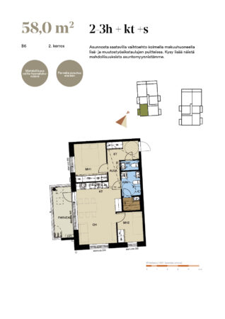 Arvioitu rahoitusvastike n. vuoden ajan rakentamisvaiheen päättymisestä 639,24 EUR/kk sisältää lainan korot (ei lainan lyhennystä). Arvioitu rahoitusvastike tulee olemaan hallinnonluovutuksen jälkeen 1354,58 EUR/kk sisältää lainan koron ja lainan lyhennykset. Arvioitu tontinlunastushinta on tämän asunnon osalta 47 796,00 EUR (lunastuksen jälkeen ei peritä tontinvuokravastiketta, joka tämän asunnon osalta on 218,08 EUR/kk).