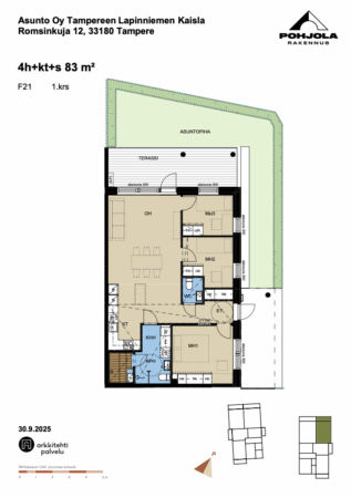 Arvioitu rahoitusvastike vuoden ajan 731,49 EUR/kk sisältää lainan korot (ei lainan lyhennystä). Arvioitu rahoitusvastike tulee olemaan vuoden jälkeen valmistumisesta 1.640,91 EUR/kk sisältää lainan koron ja lainan lyhennykset. Arvioitu tontinlunastushinta on tämän asunnon osalta 70.465,00 EUR (lunastuksen jälkeen ei peritä tontinvuokravastiketta, joka tämän asunnon osalta on 297,14 EUR/kk).