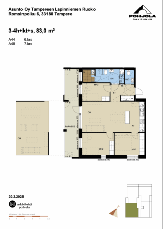 Arvioitu rahoitusvastike vuoden ajan 717,34 EUR/kk sisältää lainan korot (ei lainan lyhennystä). Arvioitu rahoitusvastike tulee olemaan vuoden jälkeen valmistumisesta 1619,80 EUR/kk sisältää lainan koron ja lainan lyhennykset. Arvioitu tontinlunastushinta on tämän asunnon osalta 66 702,00 EUR (lunastuksen jälkeen ei peritä tontinvuokravastiketta, joka tämän asunnon osalta on 311,25 EUR/kk).