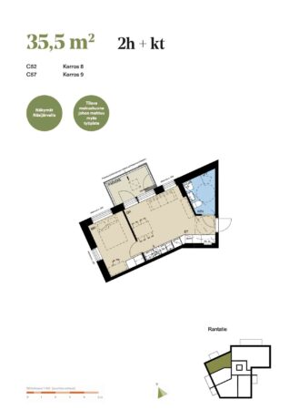 Arvioitu rahoitusvastike vuoden ajan 261,01 EUR/kk sisältää lainan korot (ei lainan lyhennystä). Arvioitu rahoitusvastike tulee olemaan vuoden jälkeen valmistumisesta 600,93 EUR/kk sisältää lainan koron ja lainan lyhennykset.